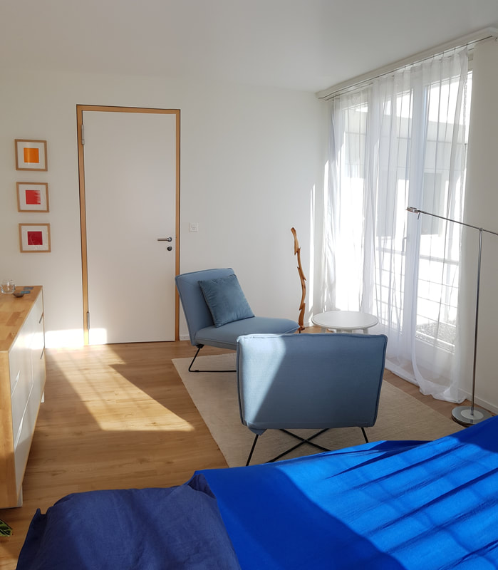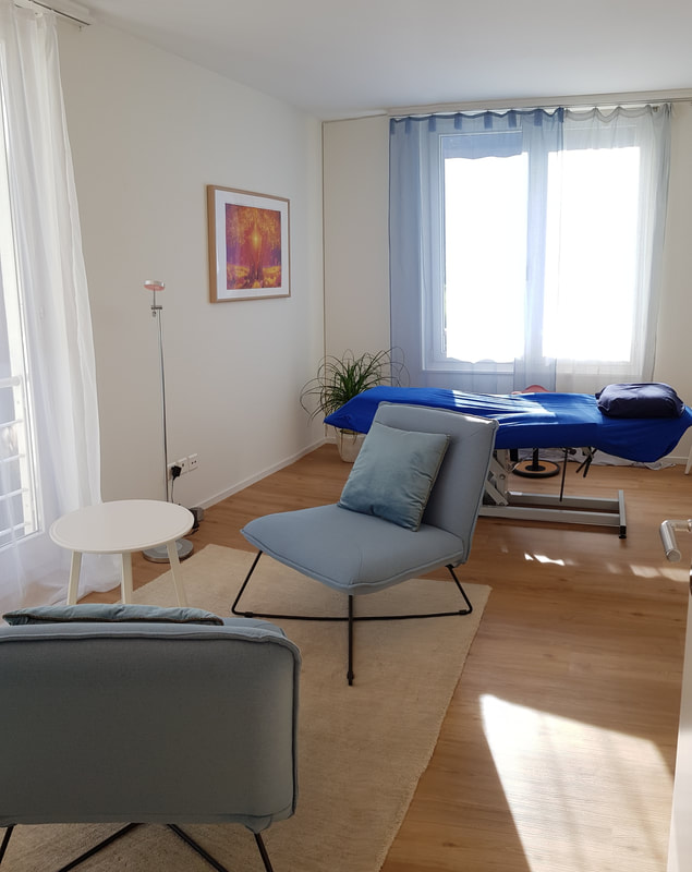 Ca. 5 Min. zu Fuss, ab Bushaltestelle bis zur Praxis.